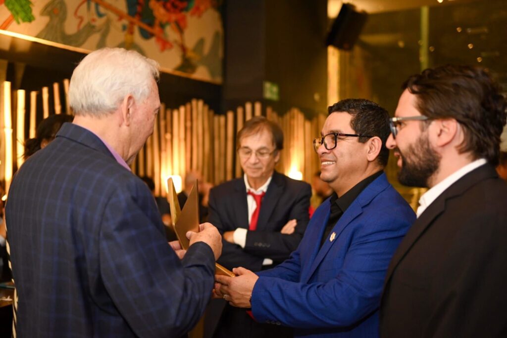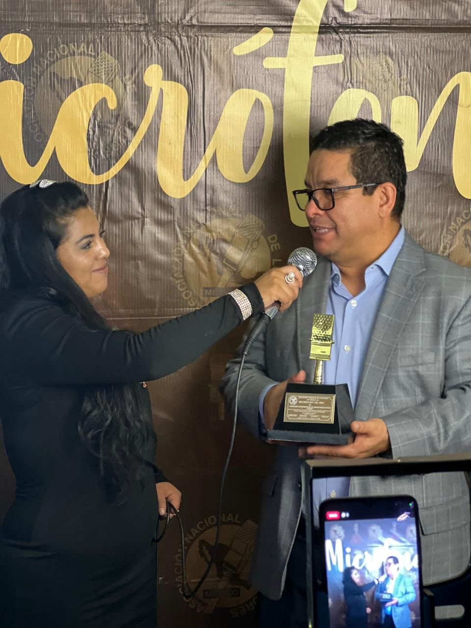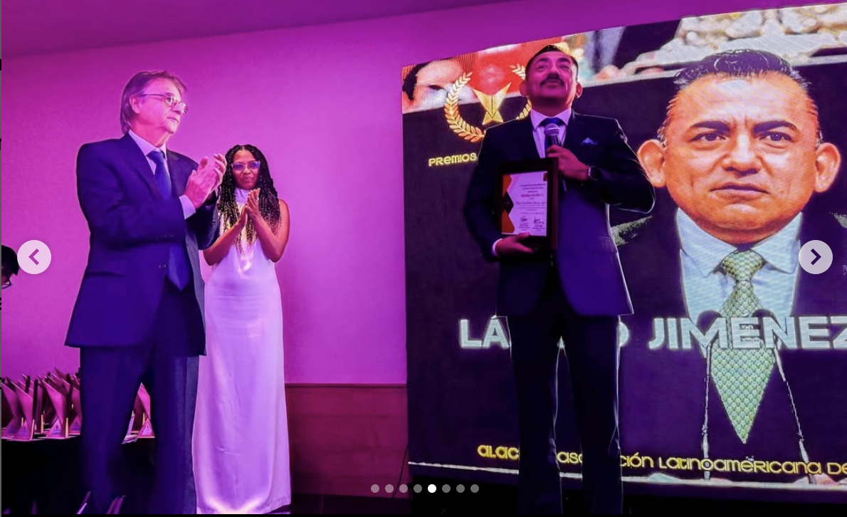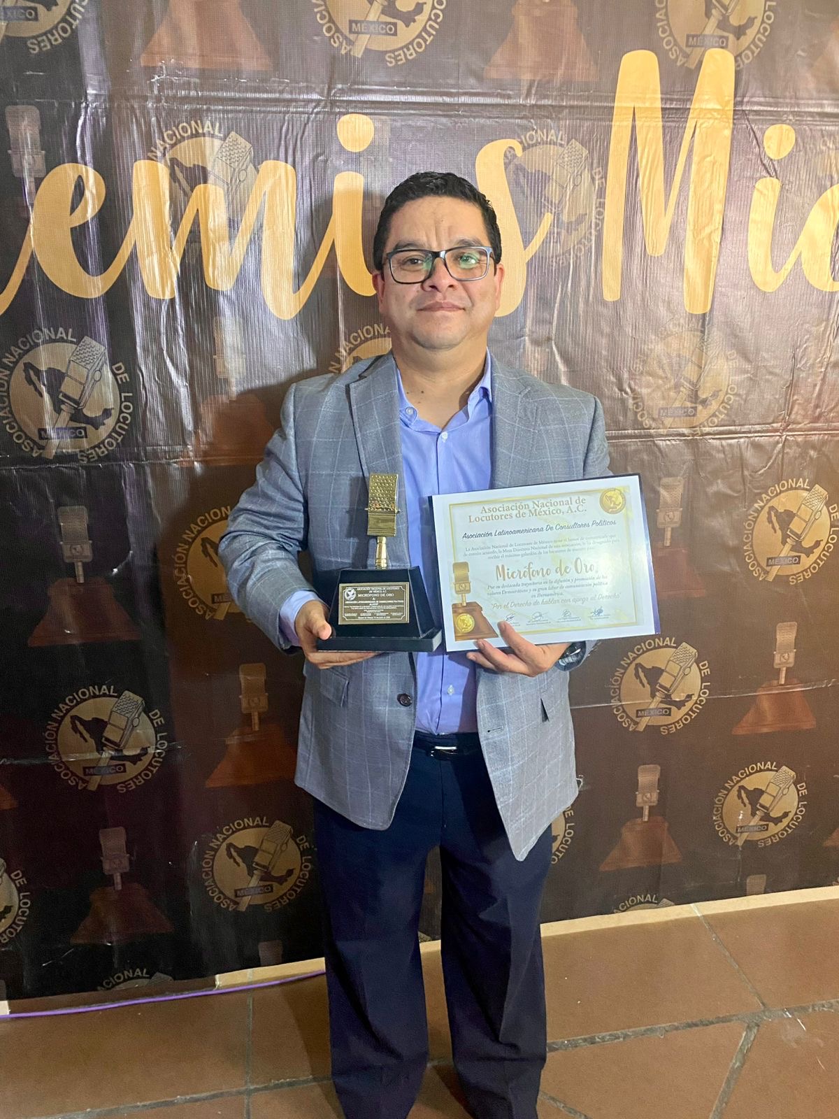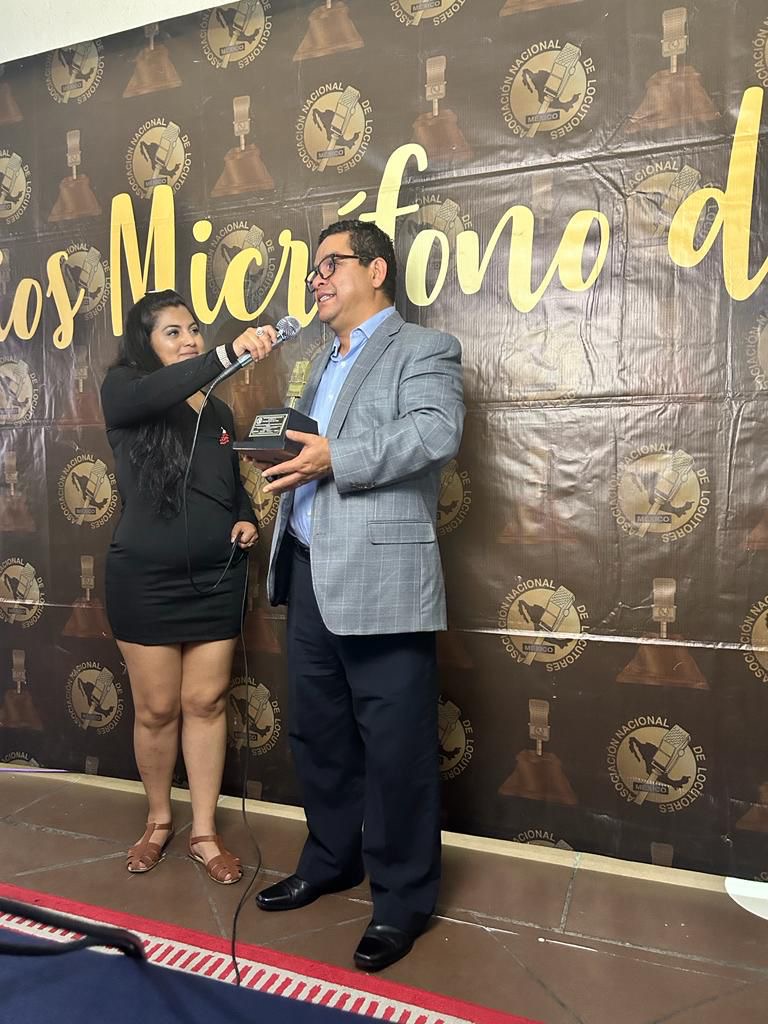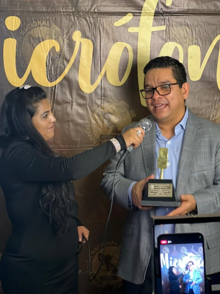 Alacop recibe el micrófono de oro por la Asociación Nacional de Locutores de México por su labor en la promoción y defensa de la democracia en América Latina. Recibe Grabriel Díaz Presidente Alacop 2021-2023