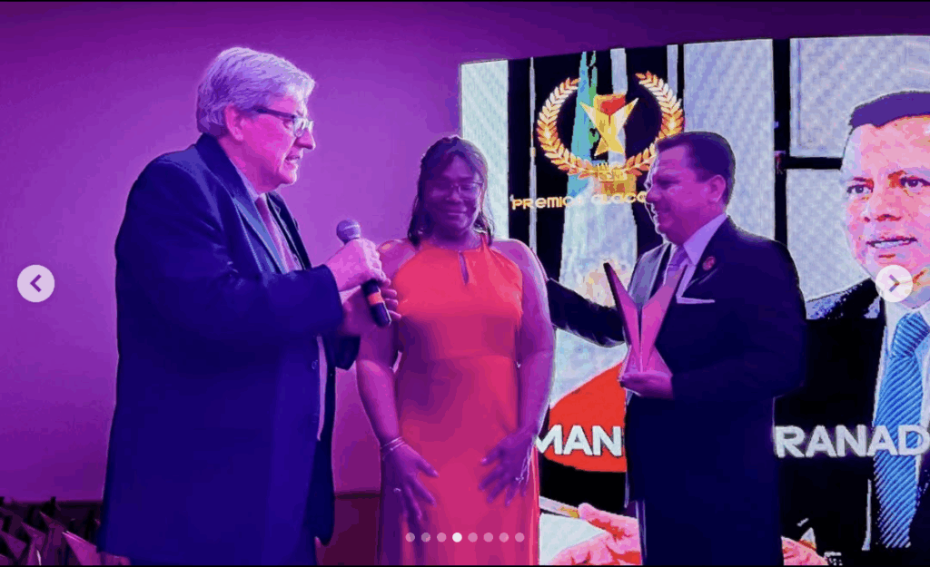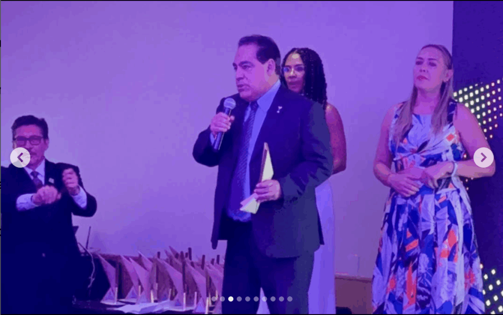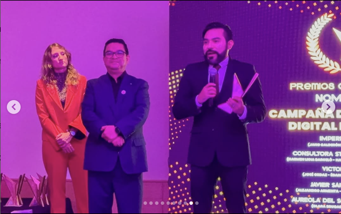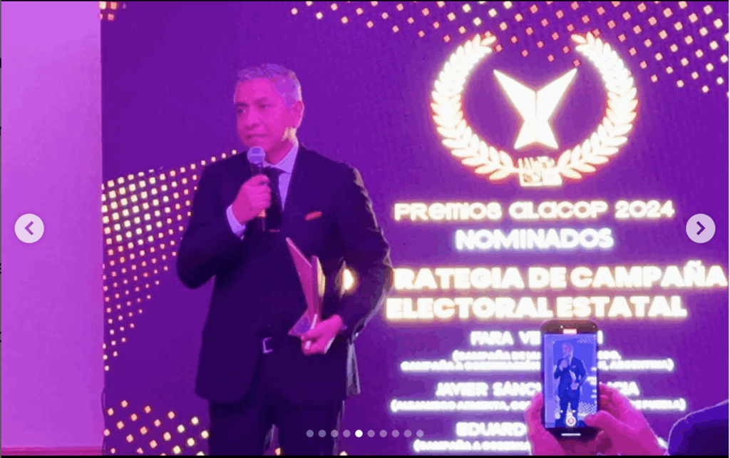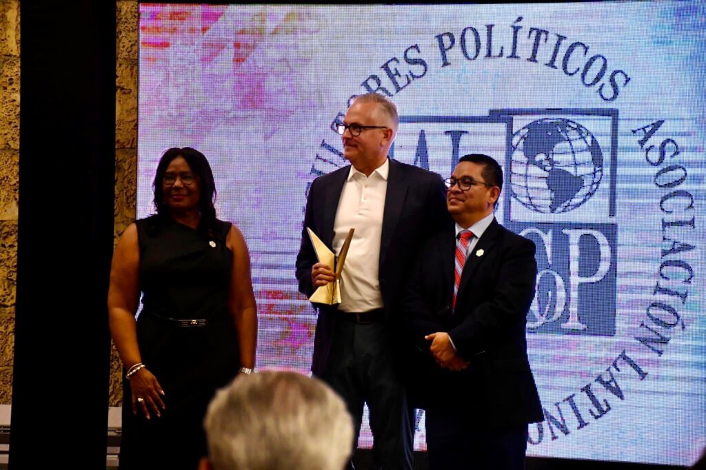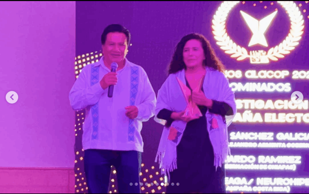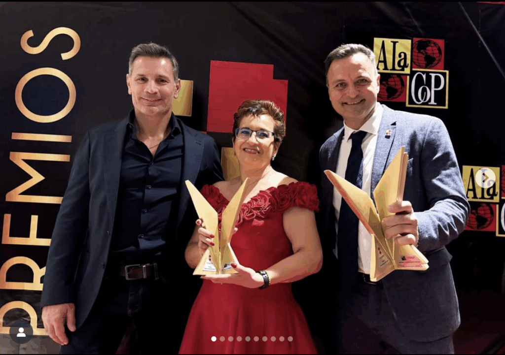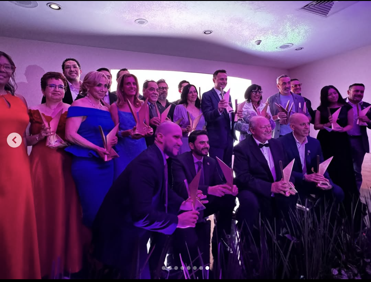 Alacop recibe el micrófono de oro por la Asociación Nacional de Locutores de México por su labor en la promoción y defensa de la democracia en América Latina. Recibe Grabriel Díaz Presidente Alacop 2021-2023